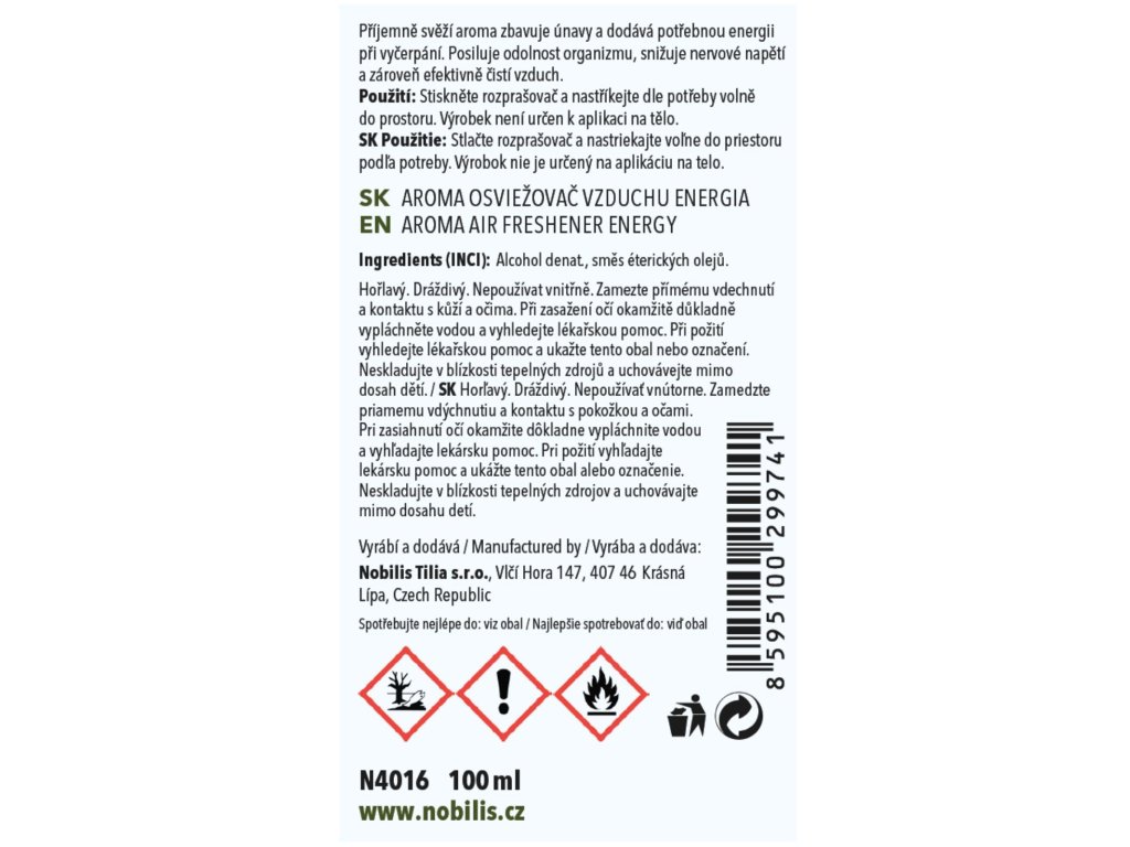 Naplňte svoj domov energiou pomocou esencií zrodených zo živlov prírody. Letné tóny bylín a citrusov vás zbavia únavy a napätia, pomôžu zvládnuť stres, vyčerpanie aj nervovú slabosť. Zmes éterických olejov má významné antimikrobiálne účinky, čistí vzduch od nežiaducich patogénov a posilňuje imunitu.